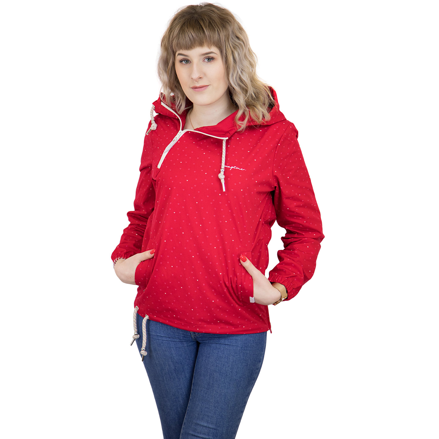 Hach ist das schön, die Tage werden wieder länger, die Vögel zwitschern, die Temperaturen steigen und die Sonnenstrahlen wärmen wieder- genau dann kannste deine dicke Winterjacke einmotten und diesen leichten Windbreaker herausholen. Spätestens der niedliche Herzchen-Print weckt die verloren geglaubten Frühlingsgefühle ;)