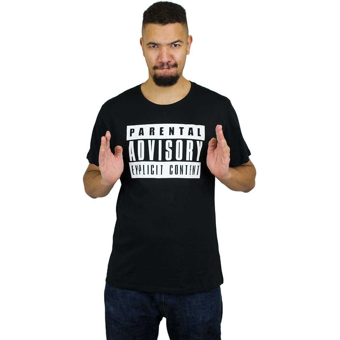 Must-Have T-Shirt für alle Hip Hop Heads: Schwarzes „Parental Advisory“ T-Shirt mit dem bekannten Warnhinweis auf der Front. Du musst gewarnt sein: Fetter Style für deinen Kleiderschrank!